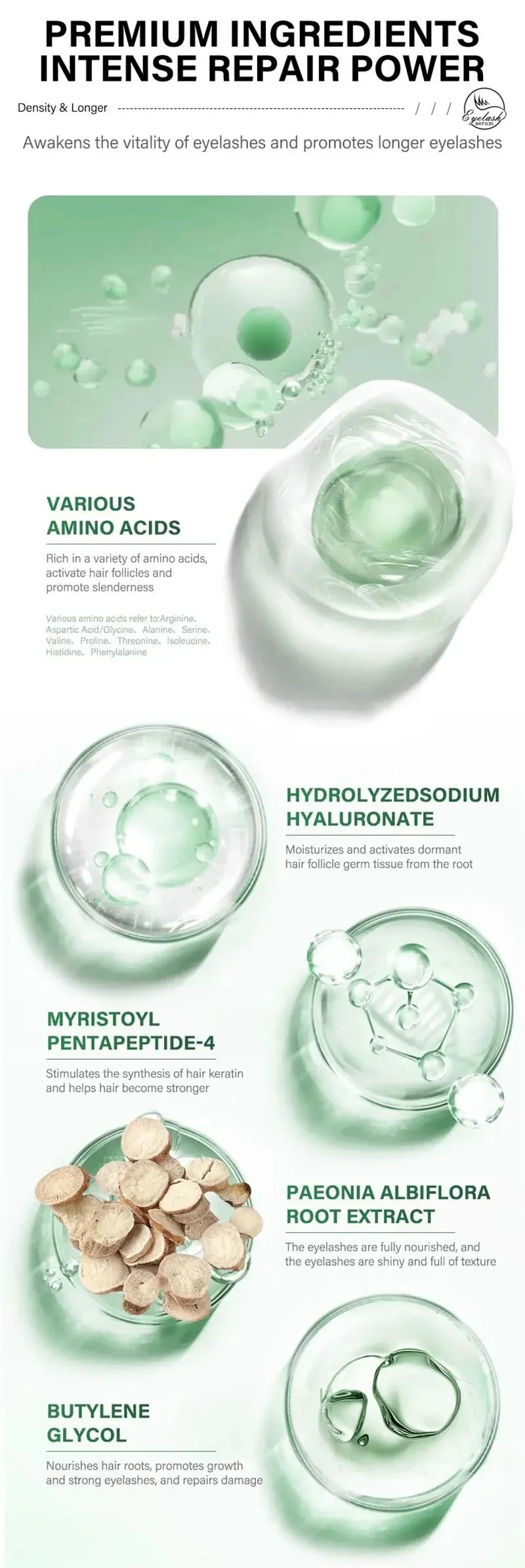 Contém fatores de promoção do crescimento dos cílios para despertar olliculos de cabelo dormindo e tornar os cílios mais grossos