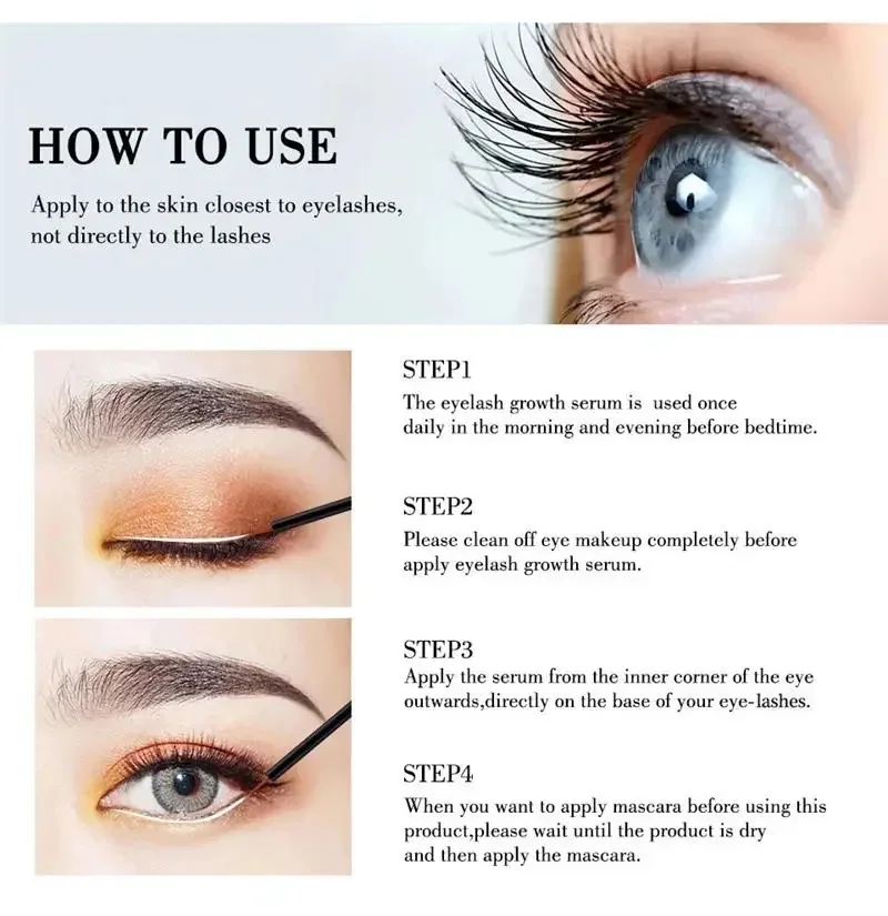 Effect: Promote growth: The active ingredients in eyelash growth serum can stimulate the blood circulation of eyelash follicles and promote the growth of eyelashes.
